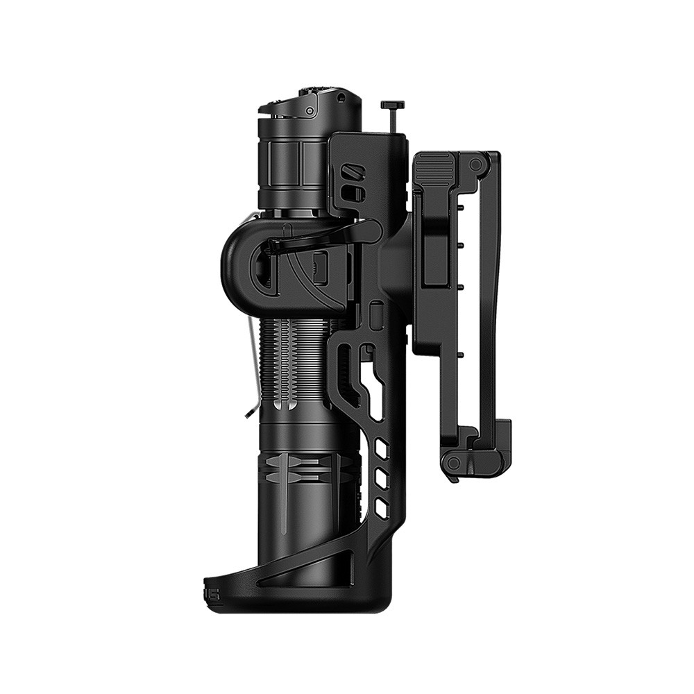 De stevige en 360° draaibare AH3-zaklamphouder maakt het mogelijk om een zaklamp met een diameter van 2,3 tot 2,7 cm en een kopdiameter van minder dan 3,1 cm aan uw riem, koppelriem of MOLLE-systeem te bevestigen. Ook handsfree gebruik is mogelijk.