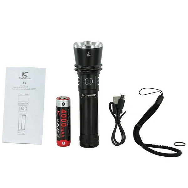 Elle dispose d'une puissance de 2200 Lumens avec la batterie d'origine 21700 4000mAh pour une portée de 750 mètres grâce à sa tête réglable (fonction zoom)