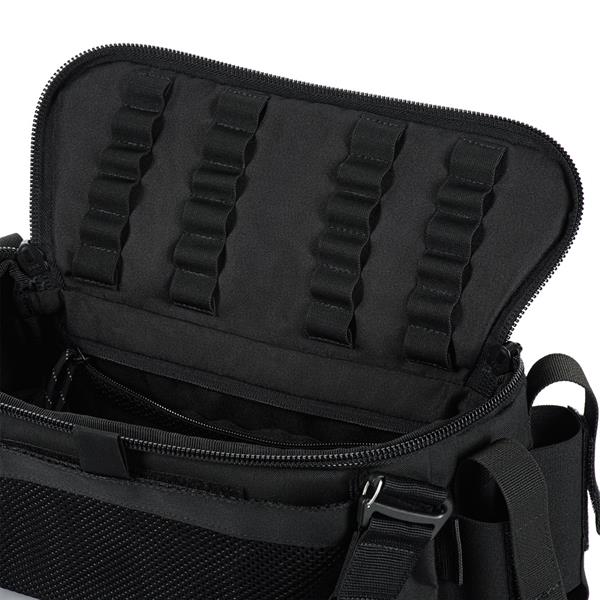 Le sac possède une poche principale équipée d'un organiseur spécialement adapté à l'acronyme « MARCH ». Dans le cadre du concept TCCC (Tactical Combat Casualty Care), l'acronyme MARCH est recommandé pour la deuxième phase d'intervention : les soins tactiques sur le terrain, c'est-à-dire en zone jaune ou verte. Le fabricant recommande de placer, à l'arrière et sur les côtés de l'organiseur de la poche intérieure, le matériel médical correspondant au premier niveau de soins, soit la lettre « M » (hémorragie massive). Sur le rabat et l'avant du sac, placez le matériel correspondant aux deuxième et troisième niveaux, soit les lettres « A » et « R » (gestion des voies respiratoires et respiration). De grandes poches intérieures en filet permettent de ranger d'autres équipements médicaux nécessaires.