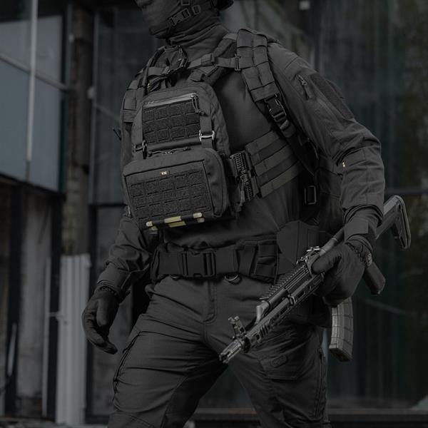 La pochette Admin Large Elite de M-Tac, à la fois pratique et fonctionnelle, complétera parfaitement votre équipement. Associée à un insert modulaire (non inclus), elle vous permet de transporter facilement documents, téléphone portable, clés, lampe torche, cartes et bien plus encore. Fabriquée en Cordura 500D de haute qualité, un tissu ultra-résistant à l'abrasion et aux fortes charges, elle est dotée d'un grand compartiment principal. Ses parois intérieures en Velcro permettent la fixation d'inserts modulaires ou le rangement d'une tablette. Un empiècement Velcro découpé au laser, cousu sur le devant, est conçu pour la fixation d'équipements et d'écussons. Au fond, un élastique permet la fixation d'une lampe torche ou d'une poignée. La pochette Admin Large Elite se fixe à votre équipement grâce au système MOLLE en Cordura Squadron, également découpé au laser. Compacte et légère, elle sera un atout précieux pour de nombreuses missions et séduira sans aucun doute les amateurs d'équipement tactique moderne.