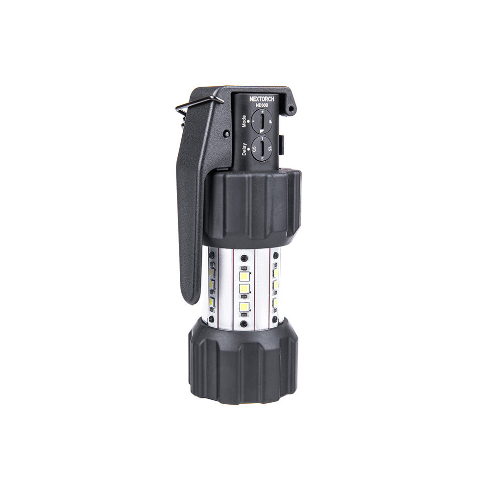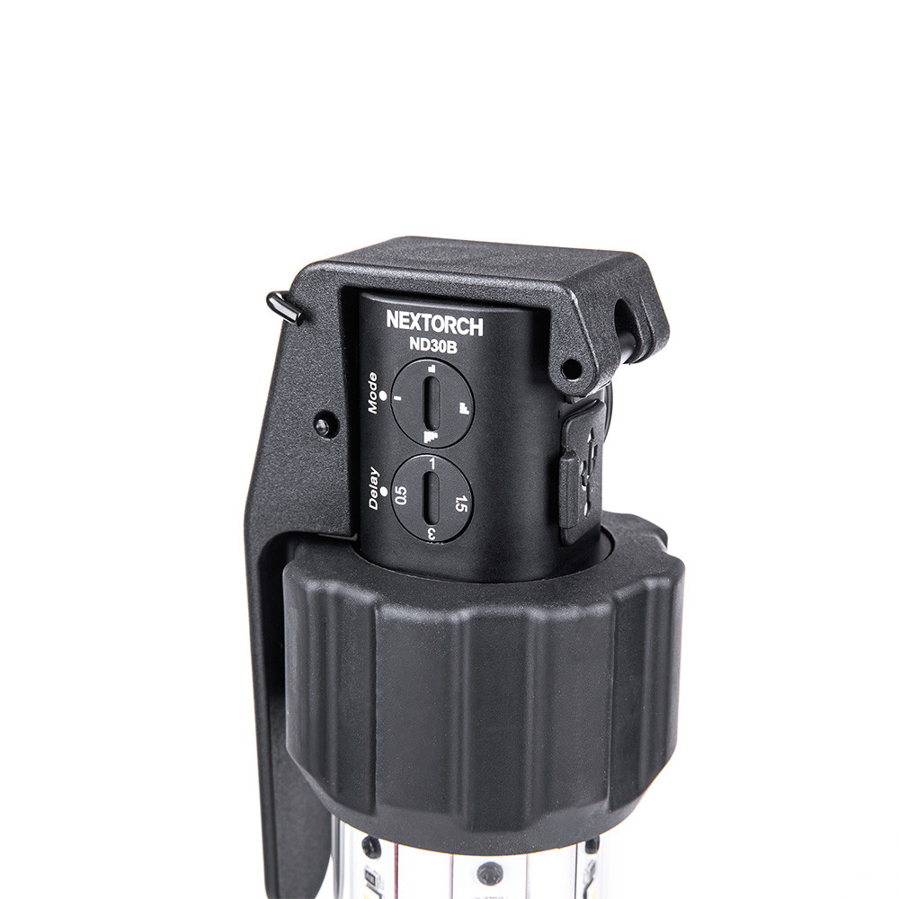 De ND30B Tactical Training Grenade is een zeer effectief apparaat voor verdoving en verblinding. De krachtige stroboscoop van 11.000 lumen en het 130 dB audiosignaal zorgen voor afleiding vóór een mogelijke aanval of helpen een potentiële aanvaller af te schrikken. Hij biedt in totaal vier programmeerbare modi voor verschillende scenario's. Hij is zeer zuinig dankzij zijn herbruikbare karakter: hij is voorzien van siliconen hoesjes en kan worden opgeladen via een ingebouwde USB-C-poort. Dit maakt het een ideale trainingsgranaat! Technische specificaties