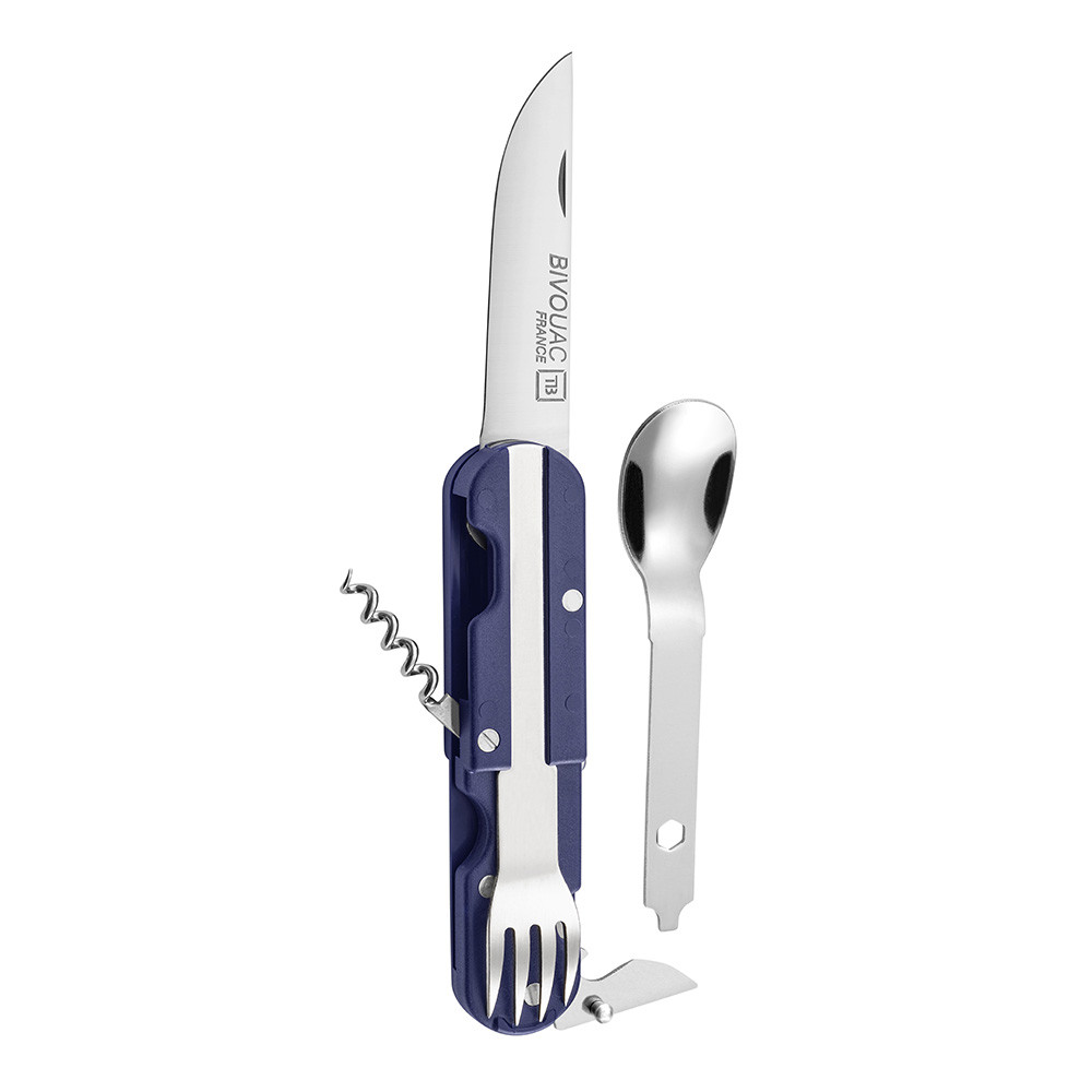 Couteau pliant "Pique-nique" avec fourchette, cuillère, décapsuleur, ouvre-boîte et tire-bouchon
